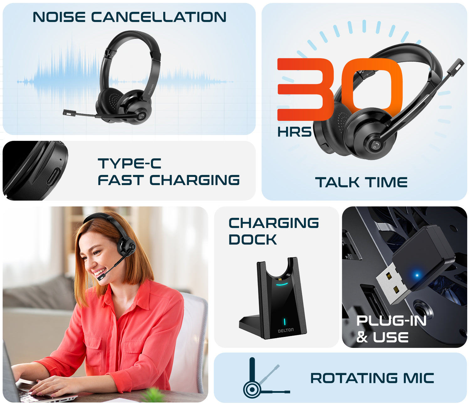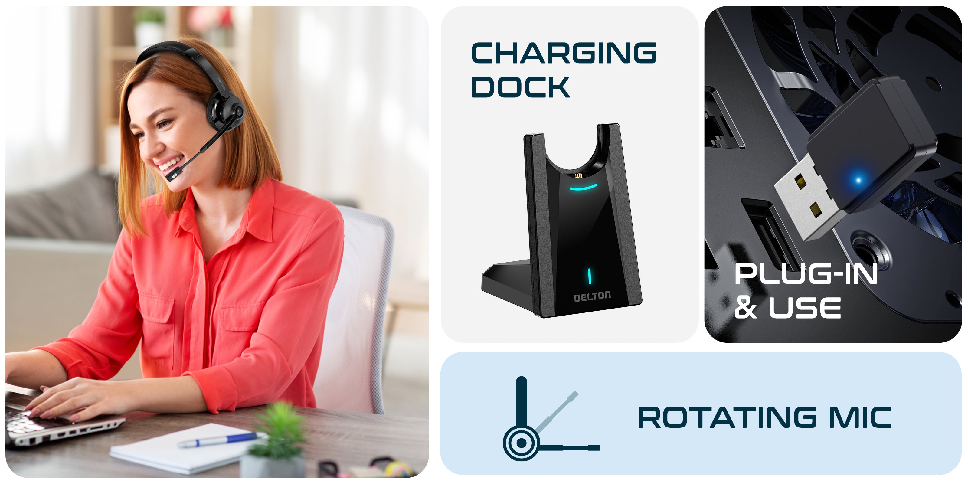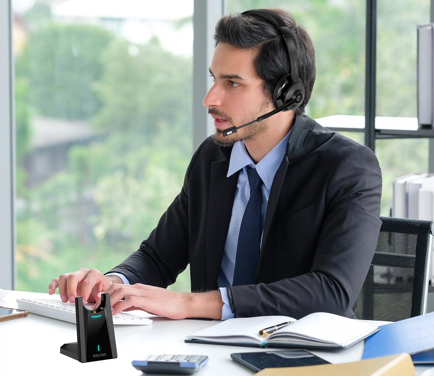 Delton 35X Wireless Noise-Canceling Computer Headset with Charging Dock