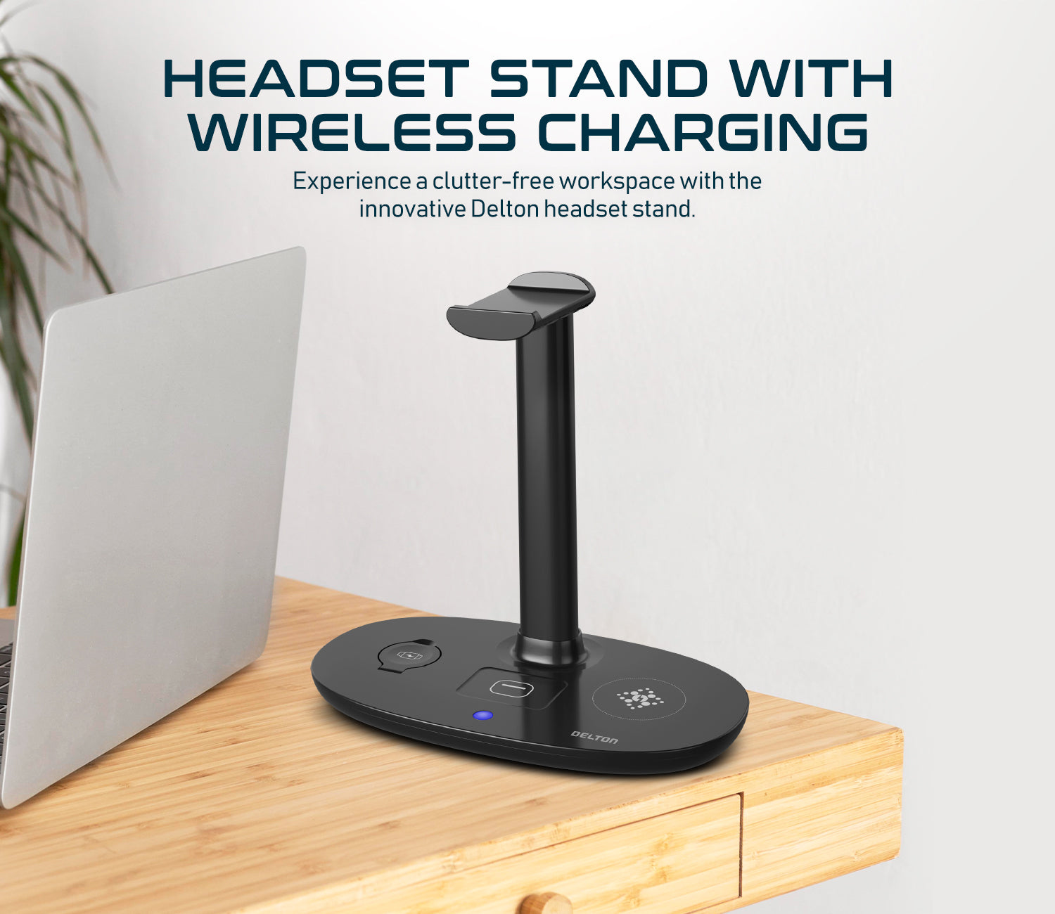 This sleek accessory combines the functionality of an 11" headset-holding arm with the convenience of three wireless charging pads, ensuring your devices stay powered up and neatly organized. Whether you're working from your home office or a corporate setting, the Delton HS1 is the perfect addition to streamline your workspace.