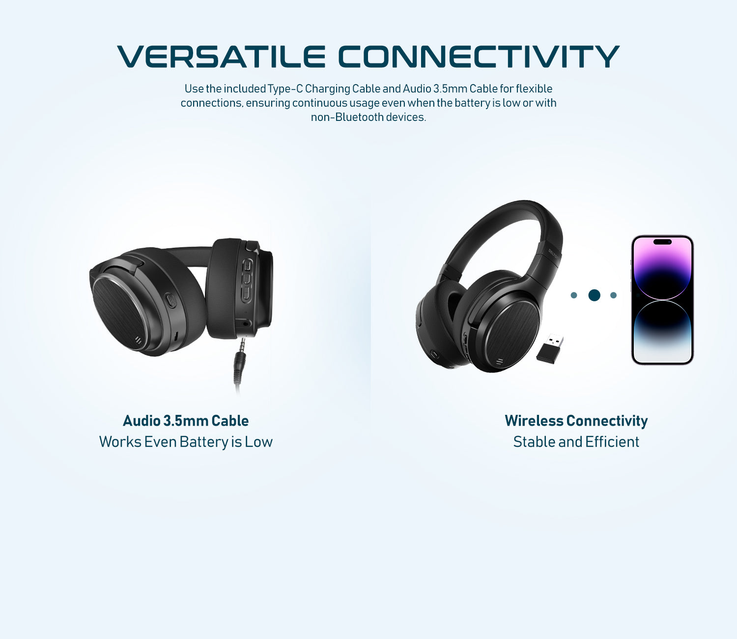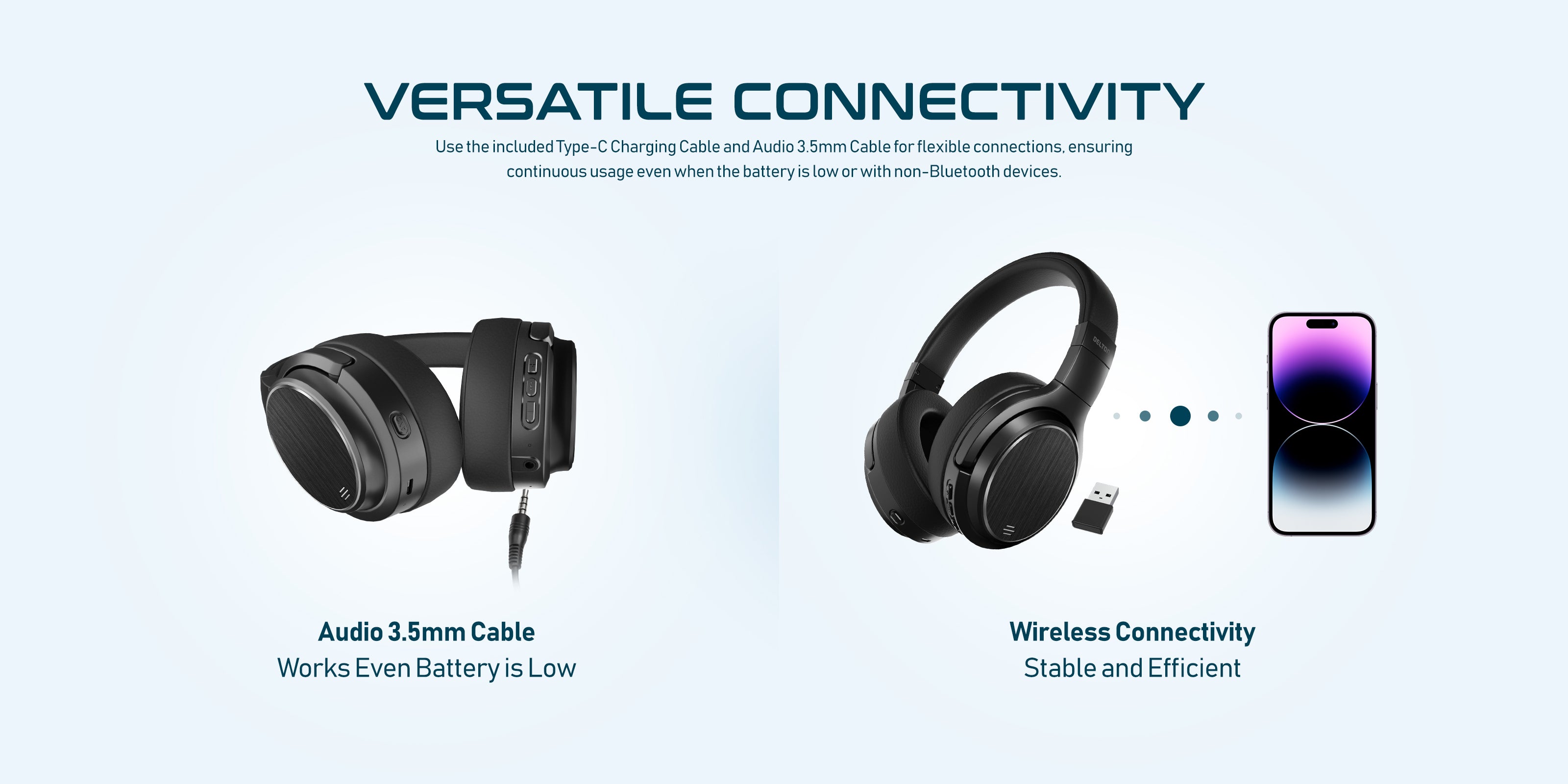 - Versatile Connectivity: Use the included Type-C Charging Cable and Audio 3.5mm Cable for flexible connections, ensuring continuous usage even when the battery is low or with non-Bluetooth devices.