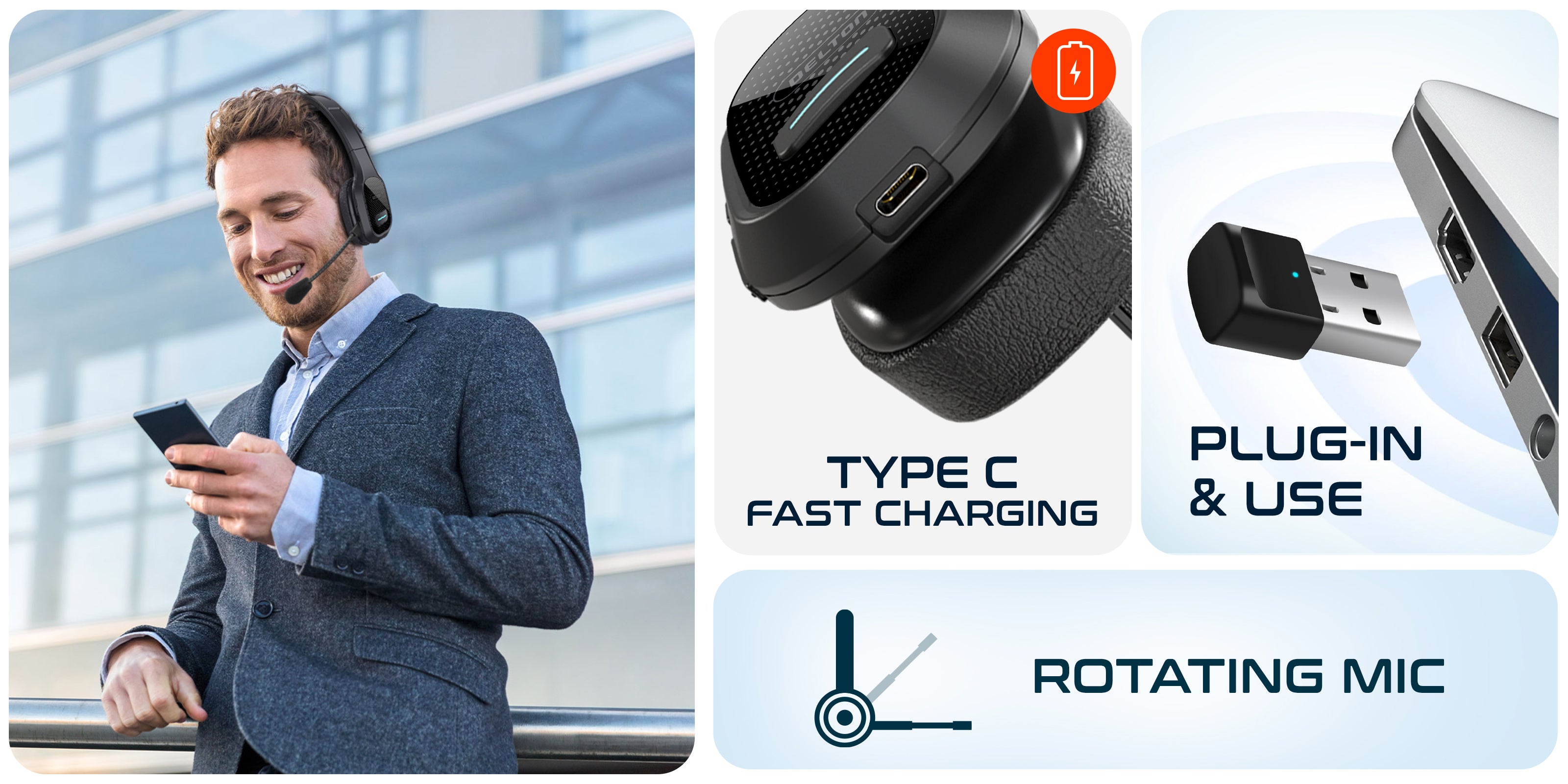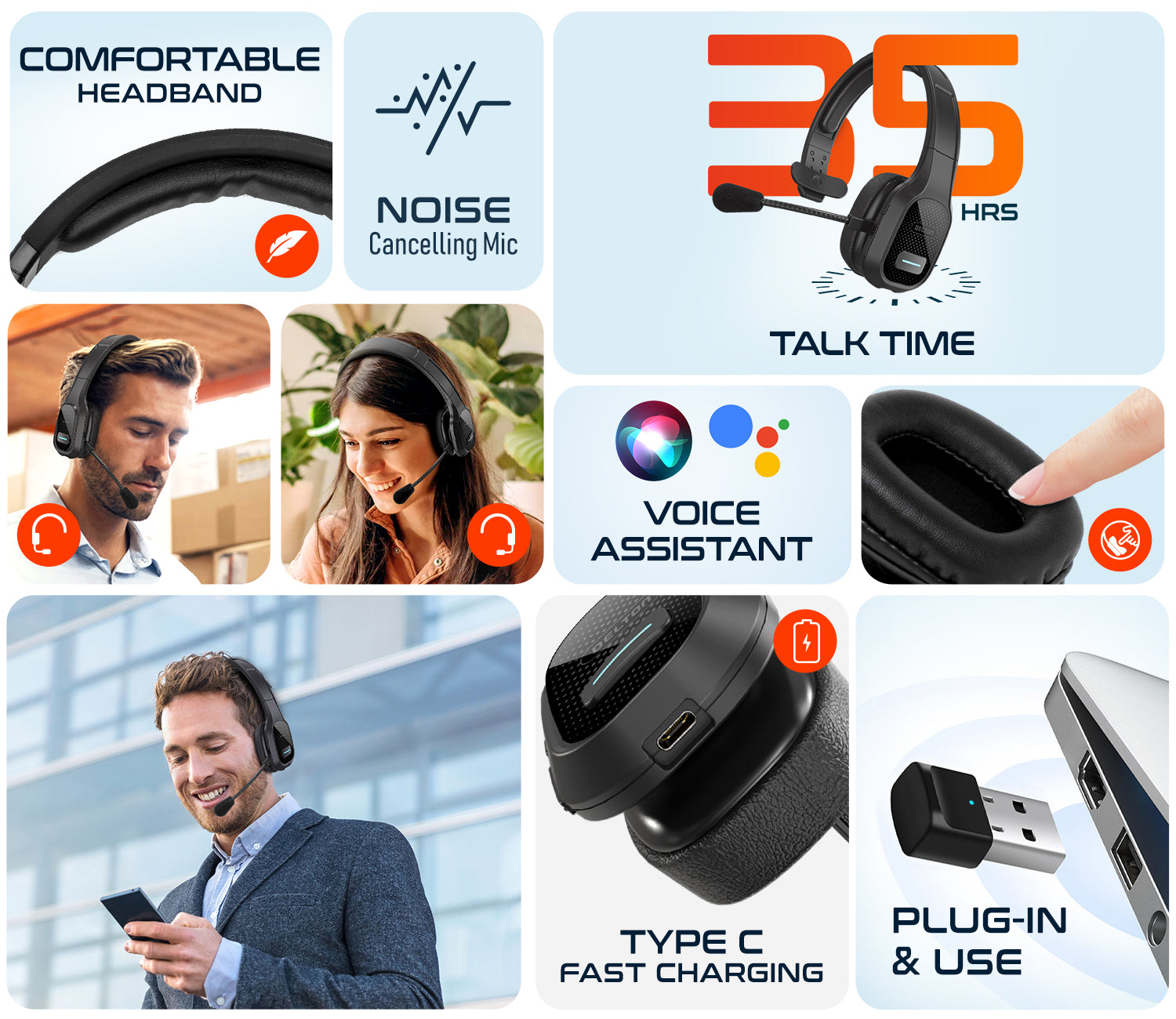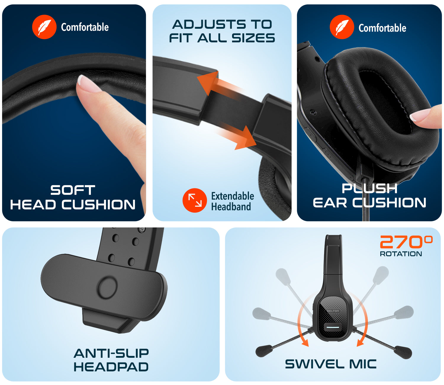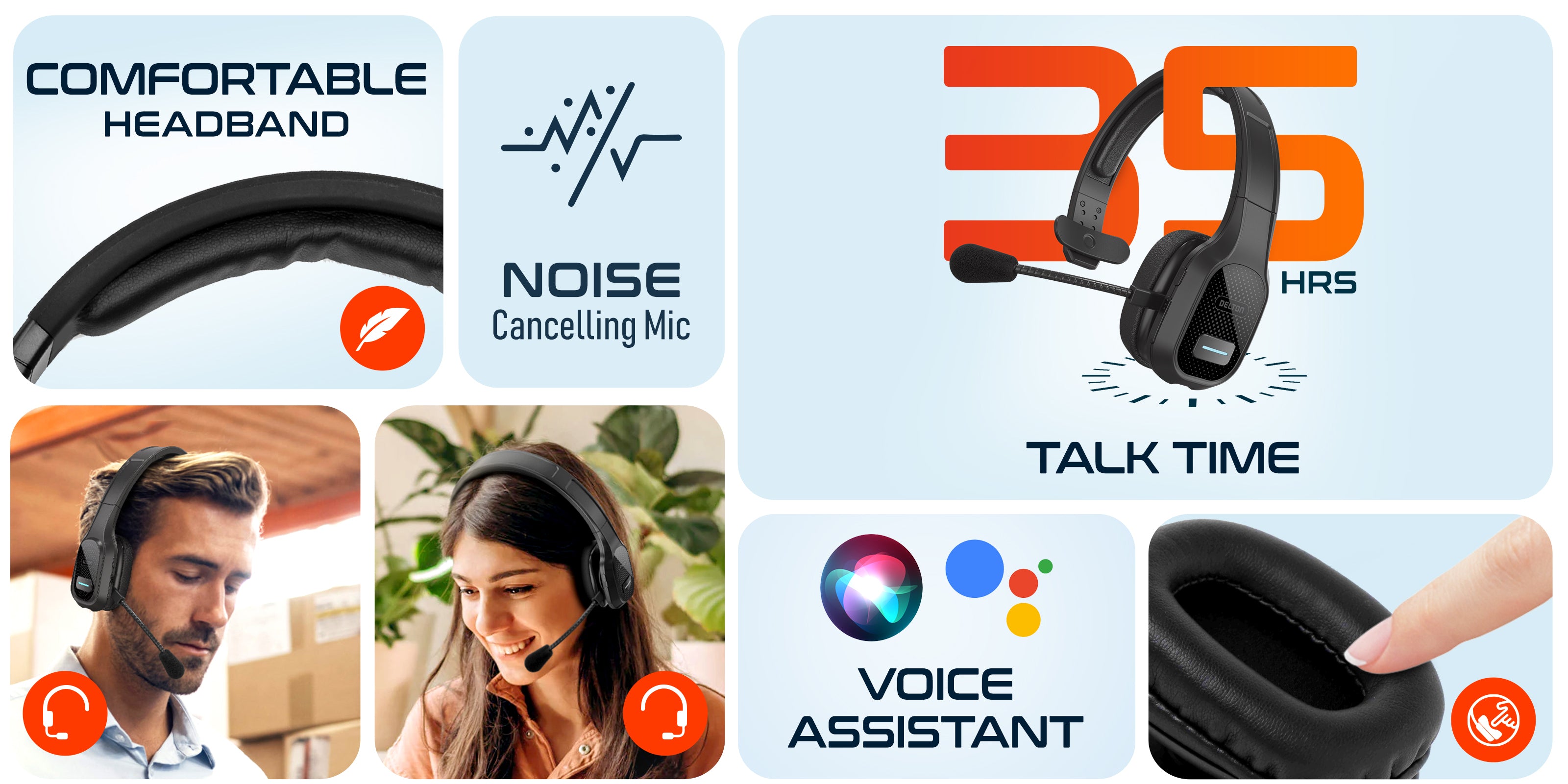 - Comfortable Adjustable Headband and Mic: Our Professional Wireless Bluetooth Headset has been redesigned with your needs in mind, providing all day comfort