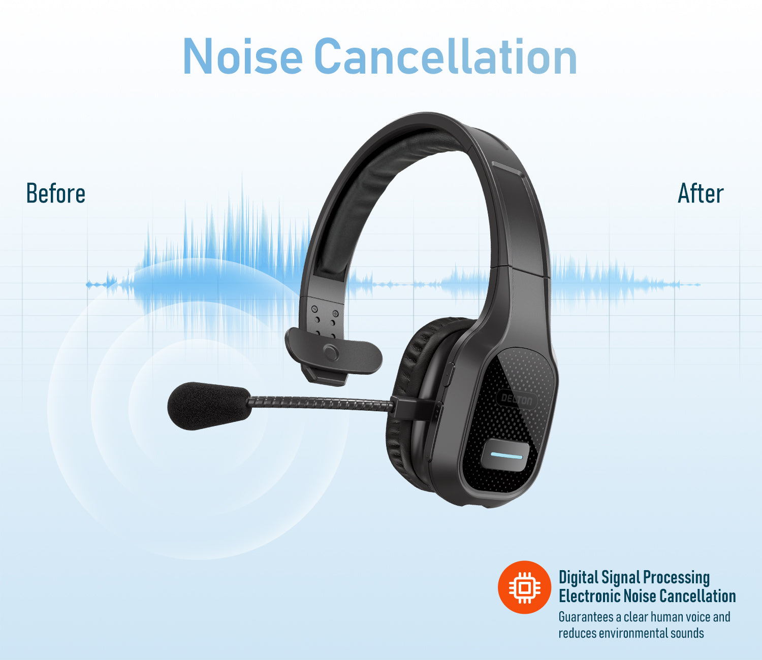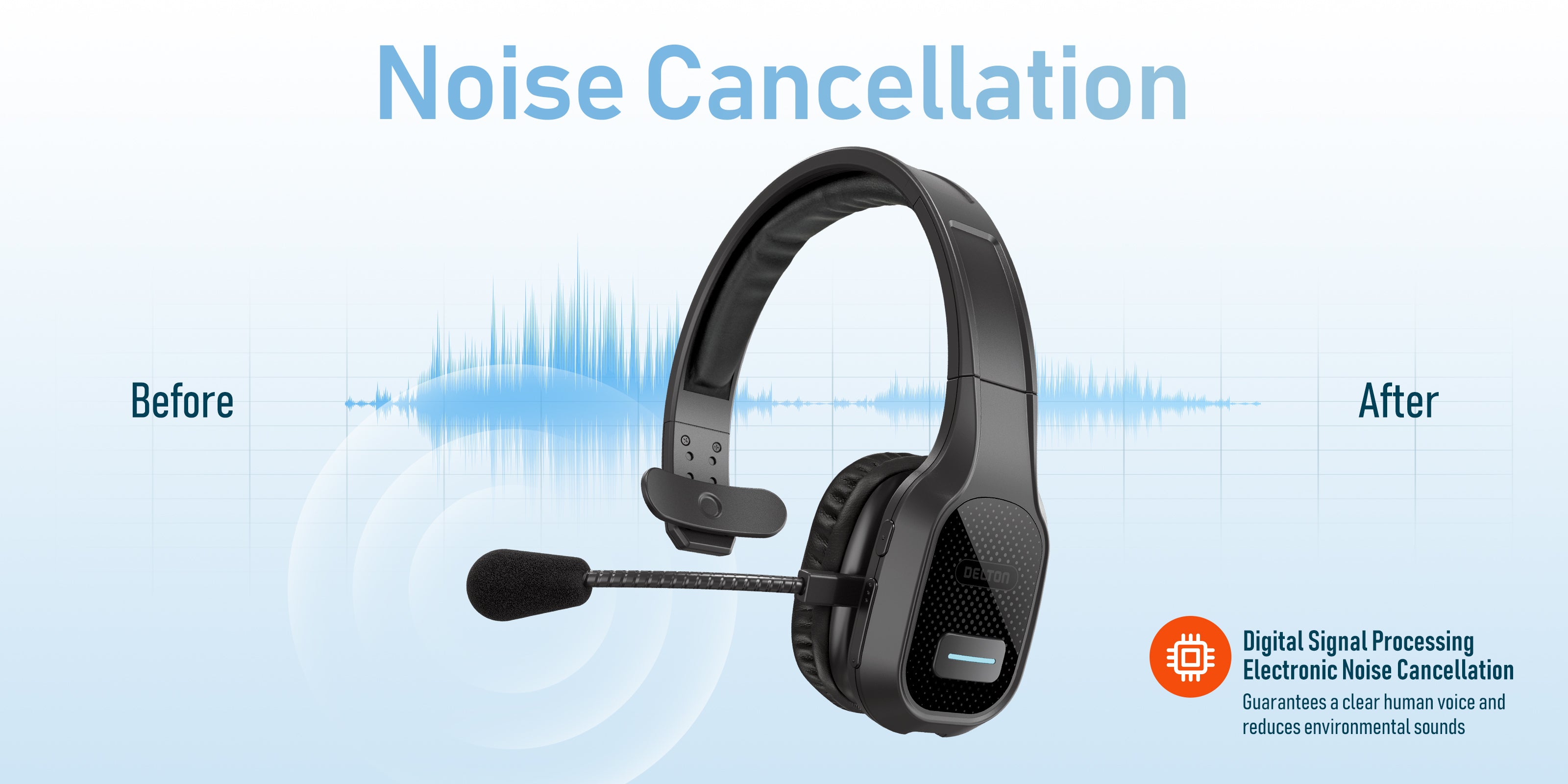 - Noise Cancelling Boom Microphone: Be heard! Whether in a noisy call center or on the road we've got you covered with a noise isolating mic that reduces noise on calls by 96%. Audio quality is an essential feature in this headset. Get sound clarity and uninhibited communication that you, your clients, and your coworkers rely on This headset offers superior noise-canceling capability you've been looking for.