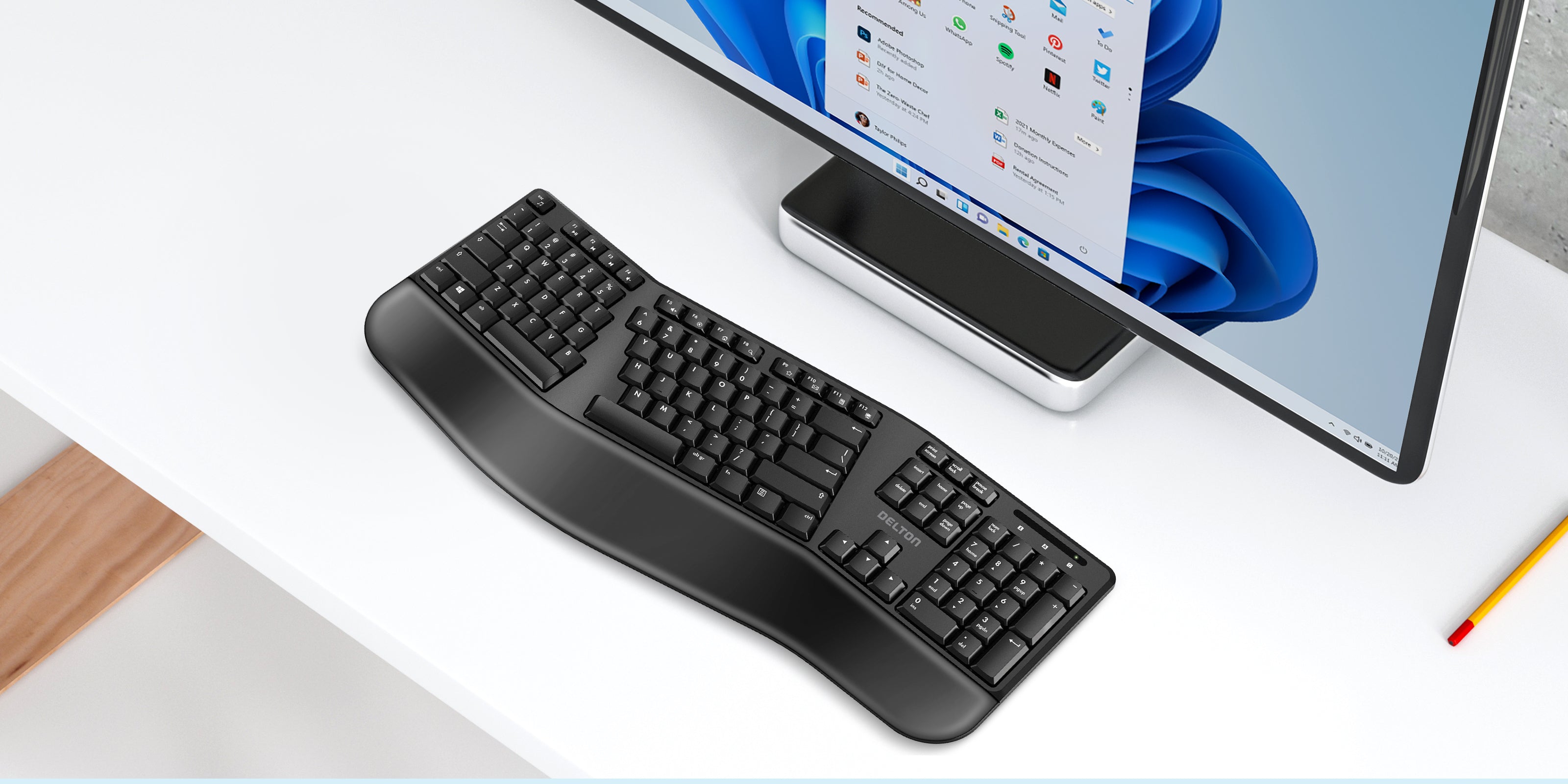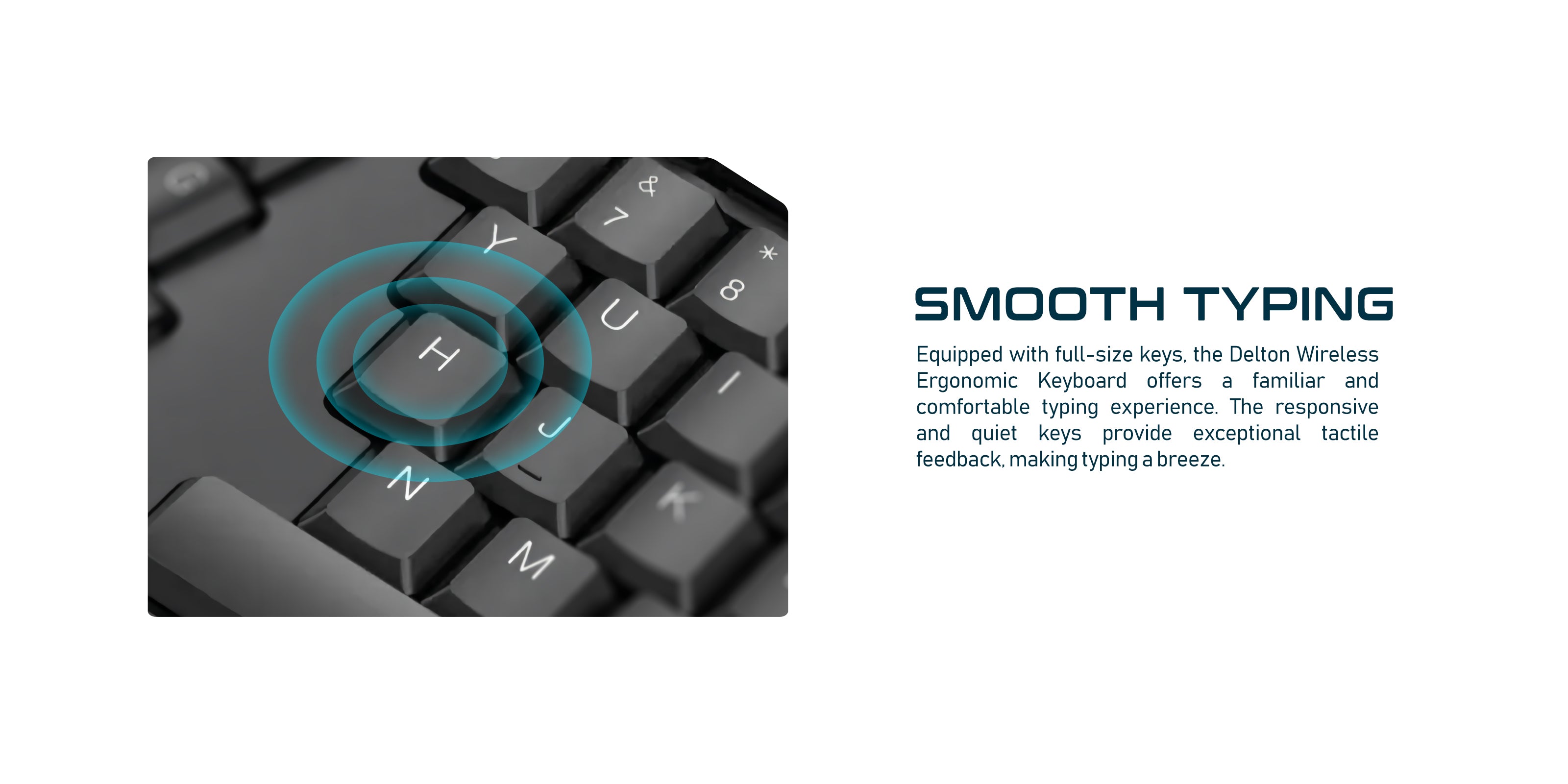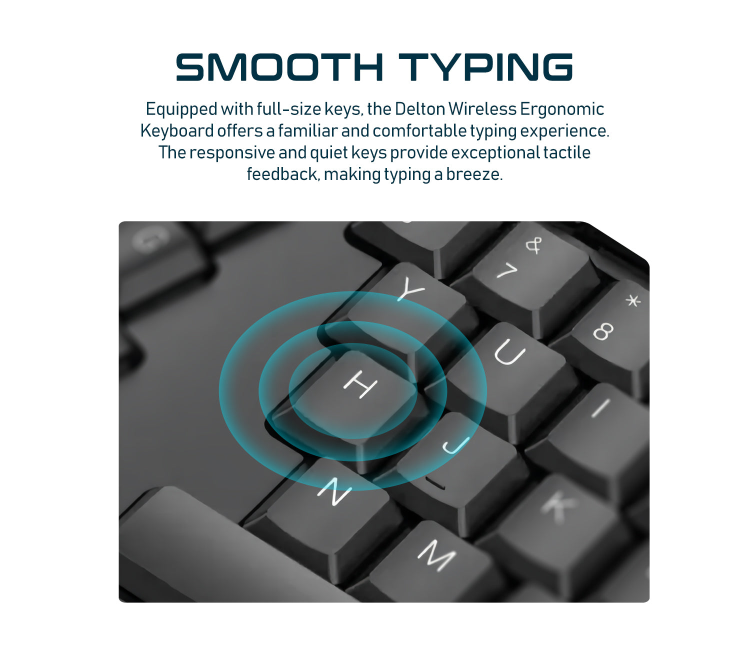 The Delton Wireless Ergonomic Keyboard blends comfort and functionality.