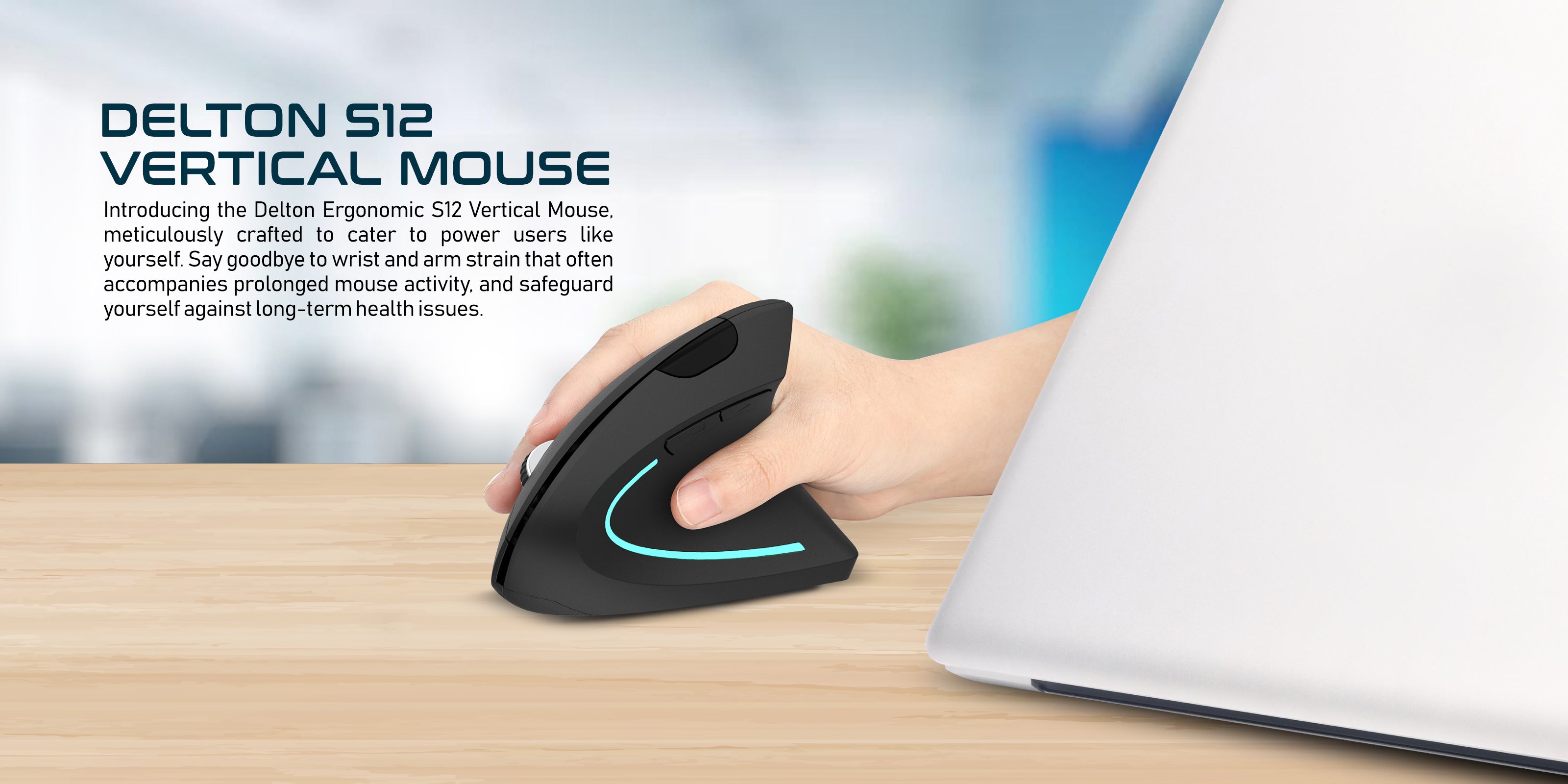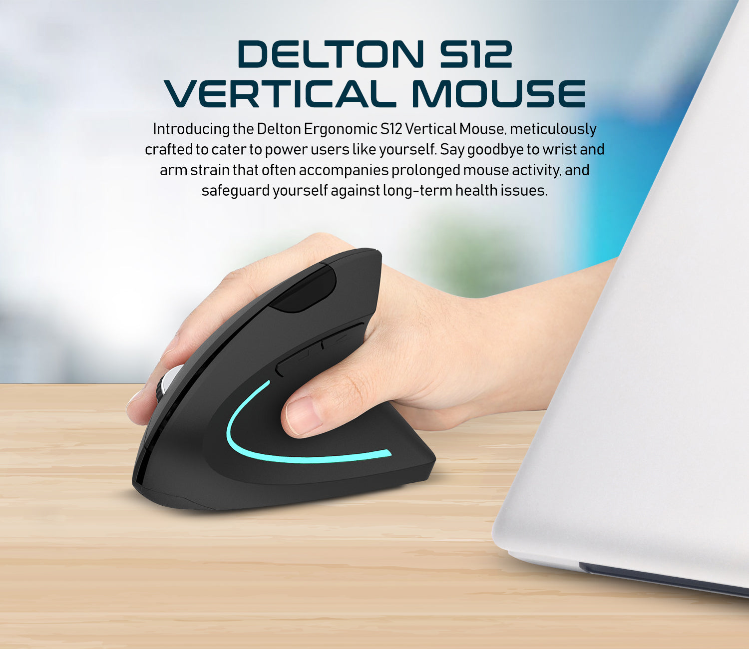 Introducing the Delton Ergonomic S12 Vertical Mouse, meticulously crafted to cater to power users like yourself.