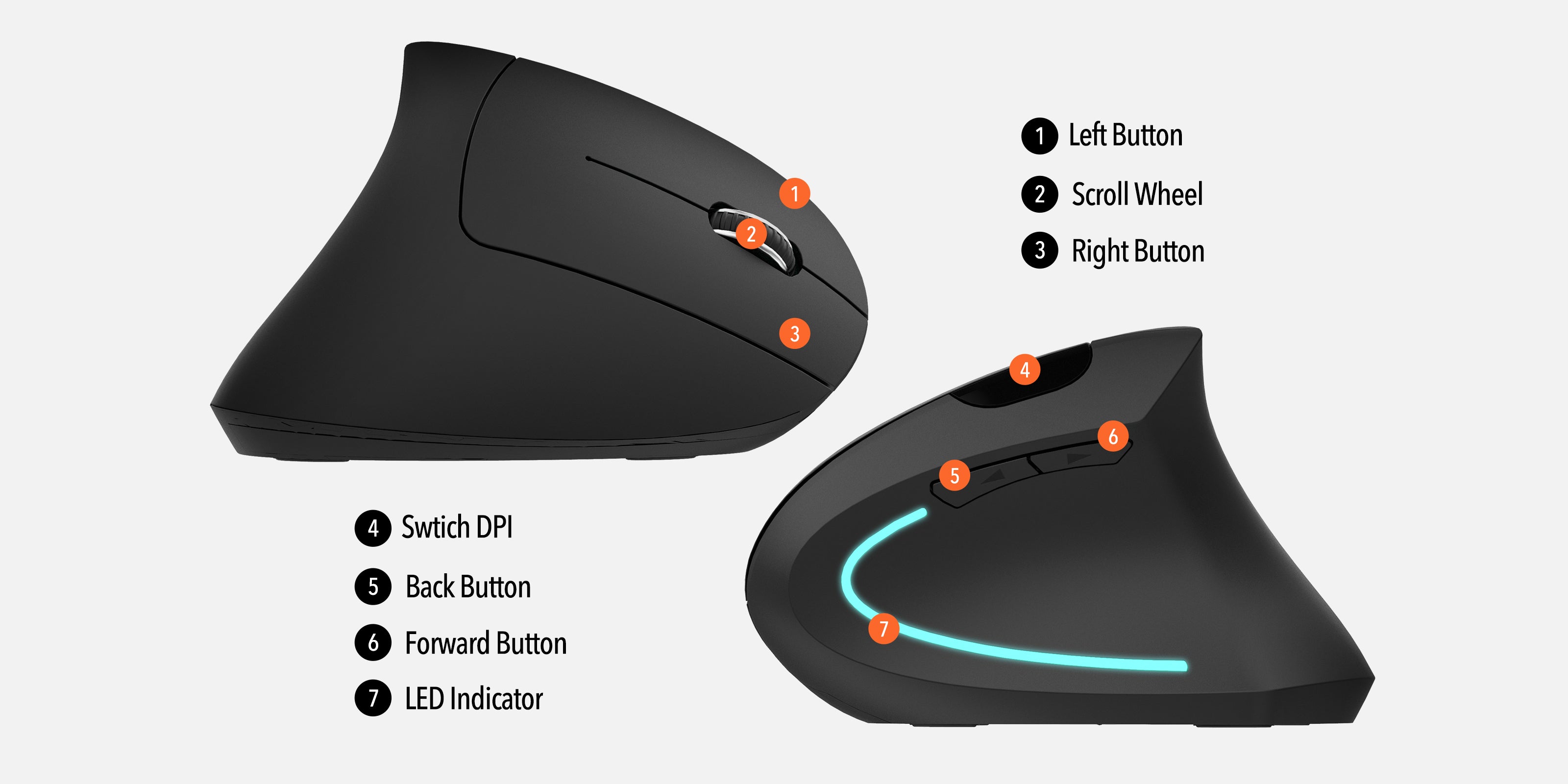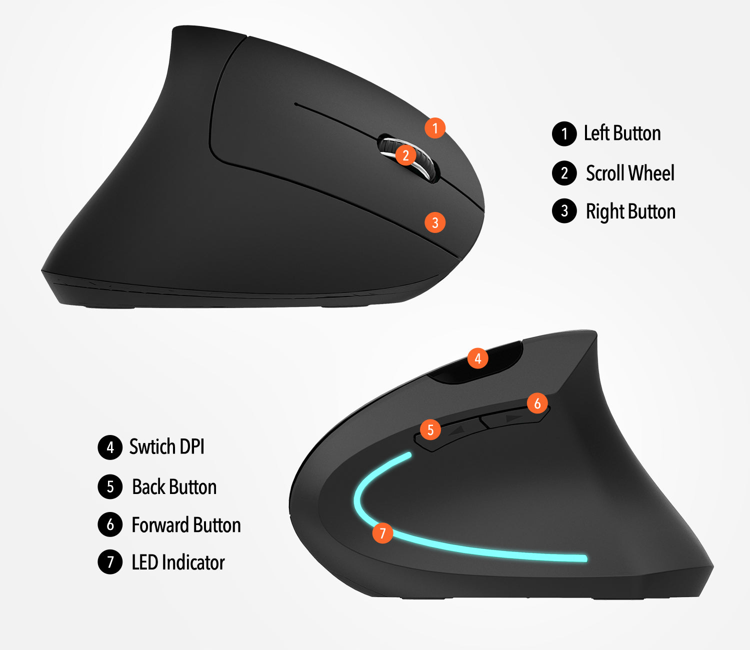 Sleek design: Made for increased functionality and comfort, this mouse combines a handshake grip with easy-access buttons and three levels of mouse sensitivity (800 / 1200 / 1600DPI) for improved tracking.